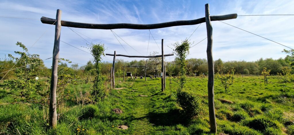 Tijdens maandelijkse werkdagen werden honderden eetbare planten aangevoerd, hakselpaden aangelegd, een pergola, boombank, bijenhotel, compostzone, infoborden en picknicktafels opgesteld.