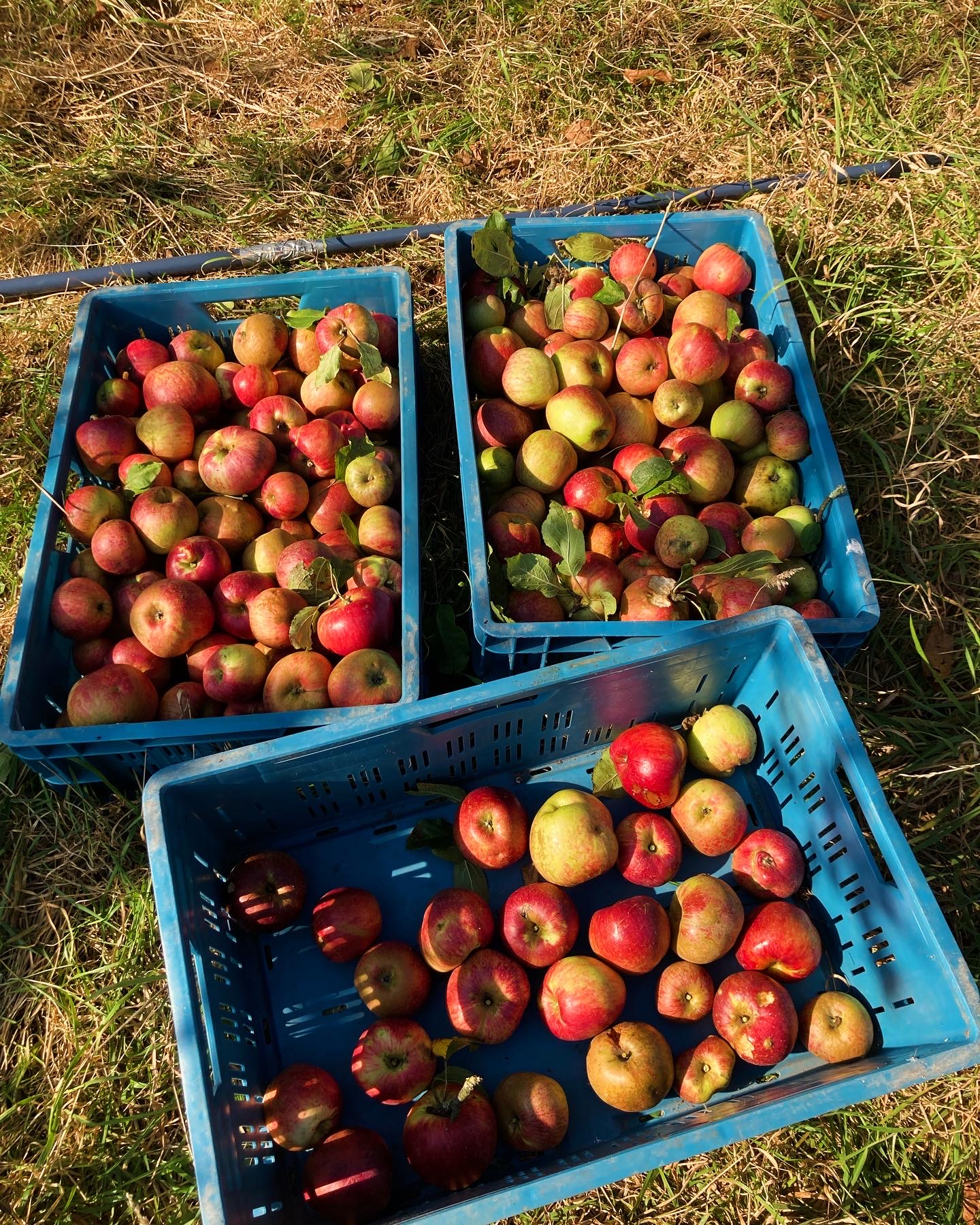 Elk jaar in september oogsten we met z’n allen de appels en peren. Er wordt o.a. sap van gemaakt en samen met de andere producten van het voorbije seizoen worden ze aangeboden op ons oogstfeest en zo lang de voorraad strekt kan je ze nadien op aanvraag nog bekomen.